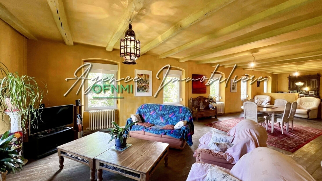 LES POINTS TECHNIQUES : Exposition principale plein Sud, gros oeuvre et toiture en bon état, simple ou double vitrage selon l’étage, volet roulant, isolation des combles et de l’appartement, chauffage fioul avec radiateurs en fonte. Grands volumes faciles à penser et à aménager, plafond à la française, plancher massif en pin régional, vue historique et dégagée sur le village et la campagne. Raccordé au tout à l’égout, taxe foncière : 1339 euros.