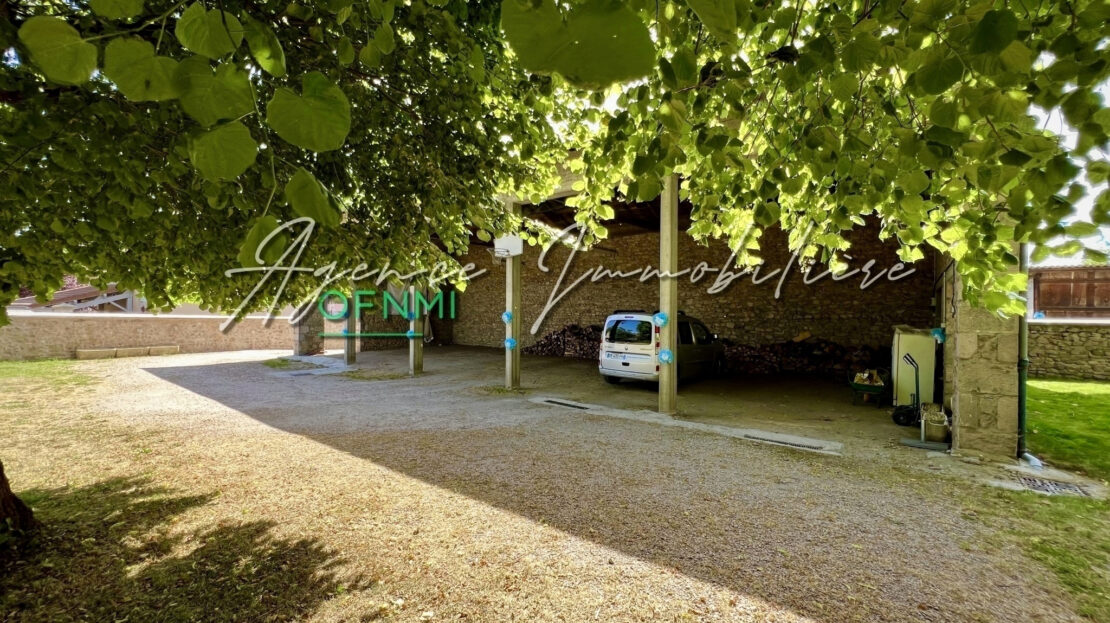 LE PARC : Terrain plat d’environ 1700 m2, clos de murs ou de haies, disposant de plusieurs entrées voitures ou piétons, il est agrémenté d’un bouquet de tilleuls centenaires, potagers, deux puits alimentés par une source, un vaste jardin ombragé et aéré. Jolie perspective du bâtiment en arrivant dans la propriété, une dépendance modulable de 175 m2 au sol, belle hauteur sous charpente, actuellement en abri cinq véhicules ou pièce de réception en période estivale.