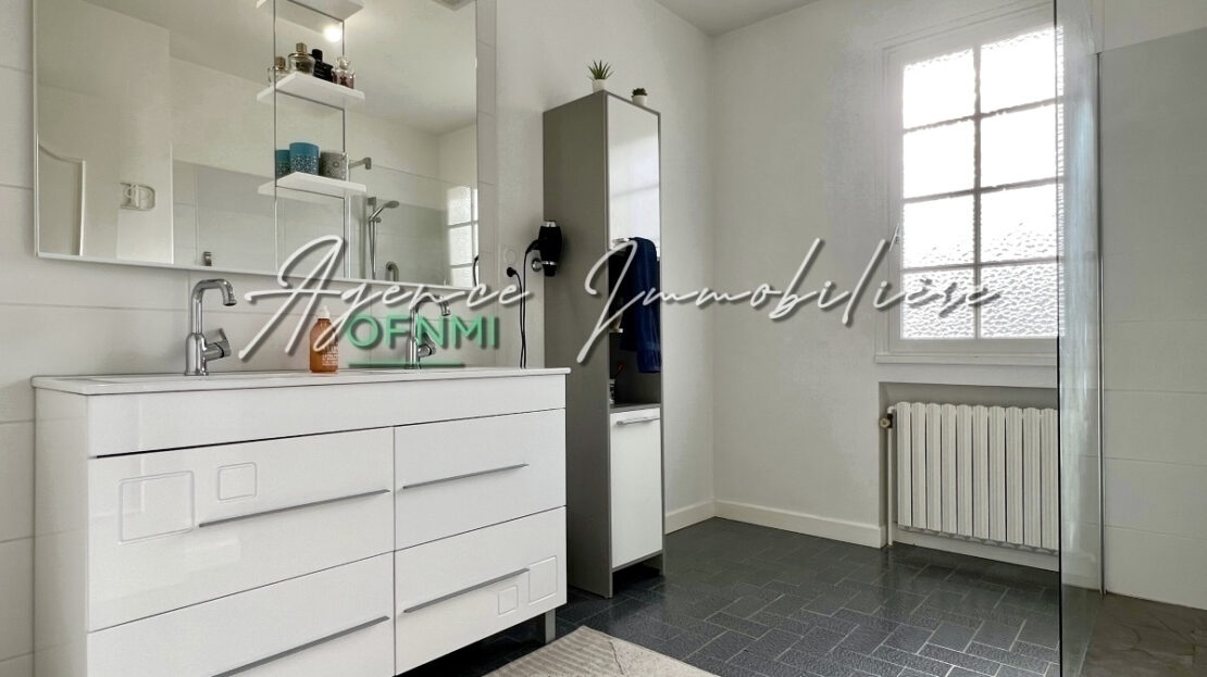 – confortable salle d’eau, plan vasque miroir, grande douche.