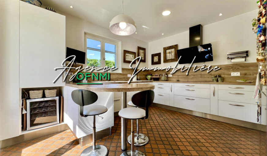 ÉLÉGANTE VILLA DE PLAIN-PIED AVEC PISCINE, CHARME ET CONTEMPORAIN, UNE RÉALISATION DÉCORATEUR. UN ESPACE IDÉAL POUR UNE FAMILLE OU UN COUPLE AVEC BELLE CAPACITÉ DE RÉCEPTION.