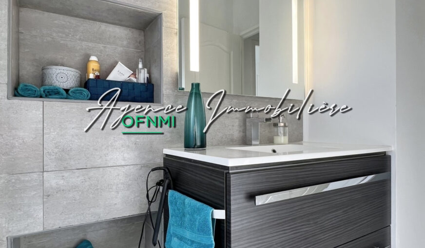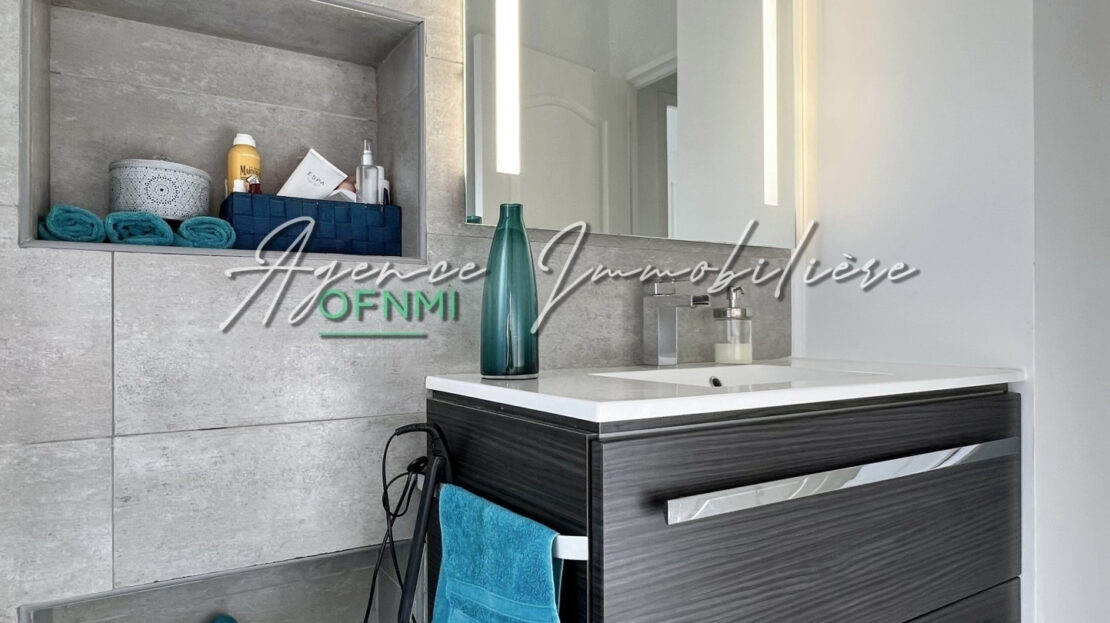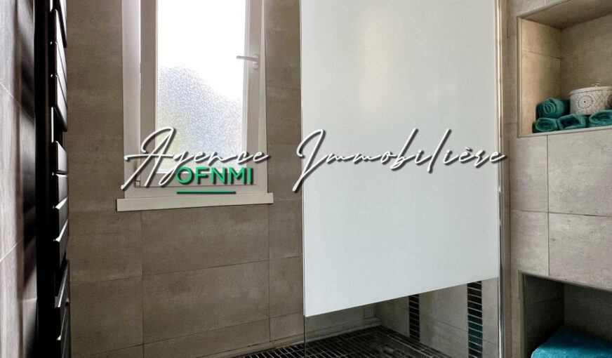 – SALLE D’EAU, 3,75 m2 : Plan vasque-miroir, niches incorporées, grande douche à l’italienne, sèche-serviettes, une fenêtre oscillo-battante.